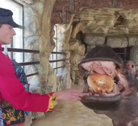 В парке миниатюр угостили обитательницу зоопарка соломенной Зимой В Бахчисарайском парке миниатюр прошли необычные масленичные гуляния. Организаторы решили отказаться от традиционного сожжения чучела Зимы и скормили его бегемоту. Угощение пришлось по вкусу обитательнице местного зоопарка по кличке Фрида, которую также называют морячкой Соней. Директор парка Виктор Жиленко рассказал, что животное с удовольствием расправилось с соломенной