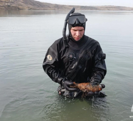 Опасный боеприпас пролежал под водой более 75 лет В Ленинском районе Крыма проведена сложная операция по обезвреживанию боеприпаса времён Великой Отечественной войны. 29 января спасатели МЧС уничтожили миномётную мину, обнаруженную на морском дне в районе мыса Ак-Бурун. Опасный предмет находился всего в трёх метрах от береговой линии на глубине 1,5 метра, представляя потенциальную угрозу. Мину