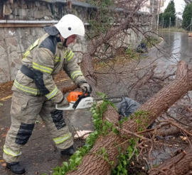 Сильный ветер и ливни повредили четыре автомобиля Штормовое предупреждение в Крыму полностью оправдалось: в Бахчисарайском районе выпало 71 мм осадков, в Белогорском и Ленинском — 58 мм, в Симферополе — 49 мм. Порывы ветра достигали 36 м/с на Ай-Петри, 24 м/с в Ленинском районе и 23 м/с в Ялте. Стихия привела к падению деревьев в